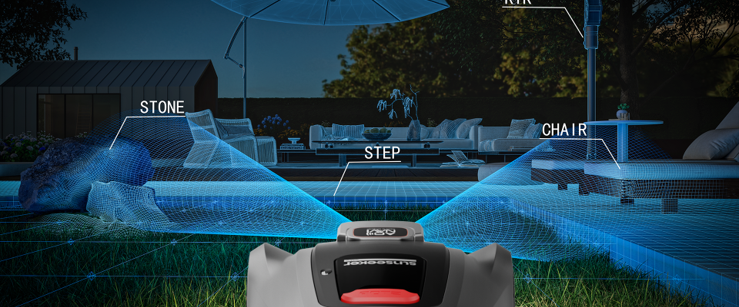 Ausgestattet mit hochtechnologischen Binokular- Kameras und leistungsstarken Rechenchips erkennt der X7 Hindernisse und manövriert mühelos durch Ihren Garten