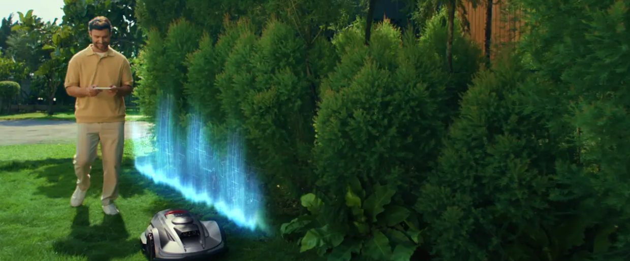 Der Rasenmäher navigiert äußerst präzise und sucht sich selbständig die effizientere Mähroute.el.