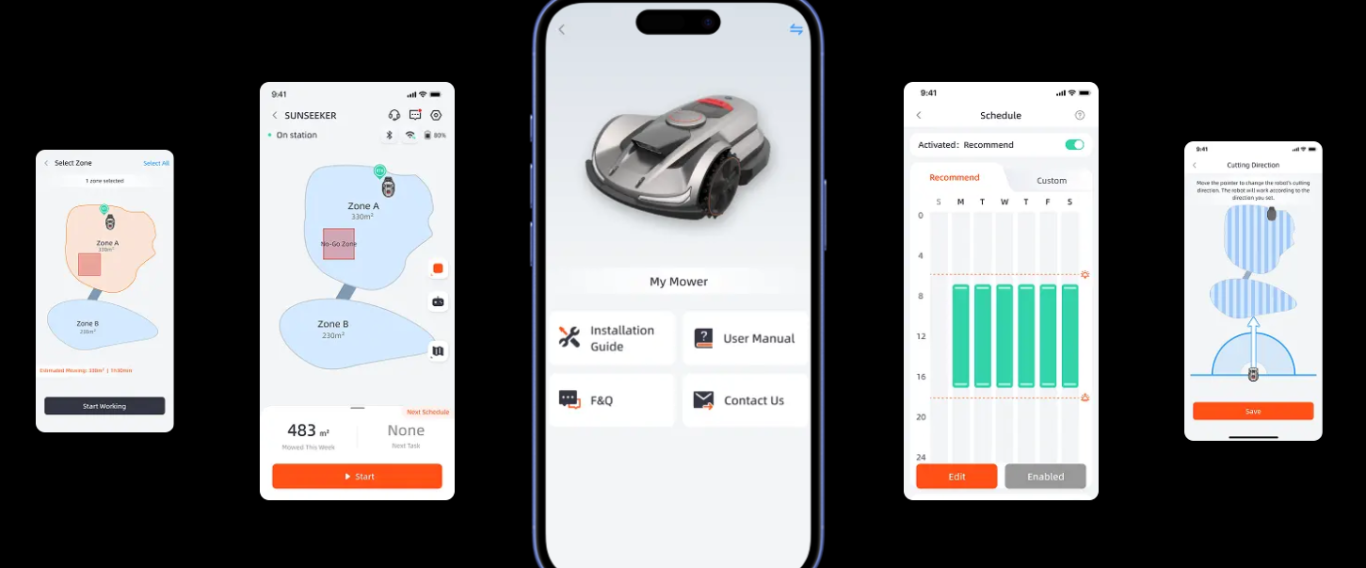 Sunseeker definiert Rasenpflege mit kabelloser Kartierung neu. Seine KI-Navigation optimiert Grenzen selbstständig und ermöglicht präzises, effizientes Mähen bei simpelster Einrichtung. Zeichnen Sie einfach einen groben Grenzverlauf in der App, der Sunseeker übernimmt den Rest.